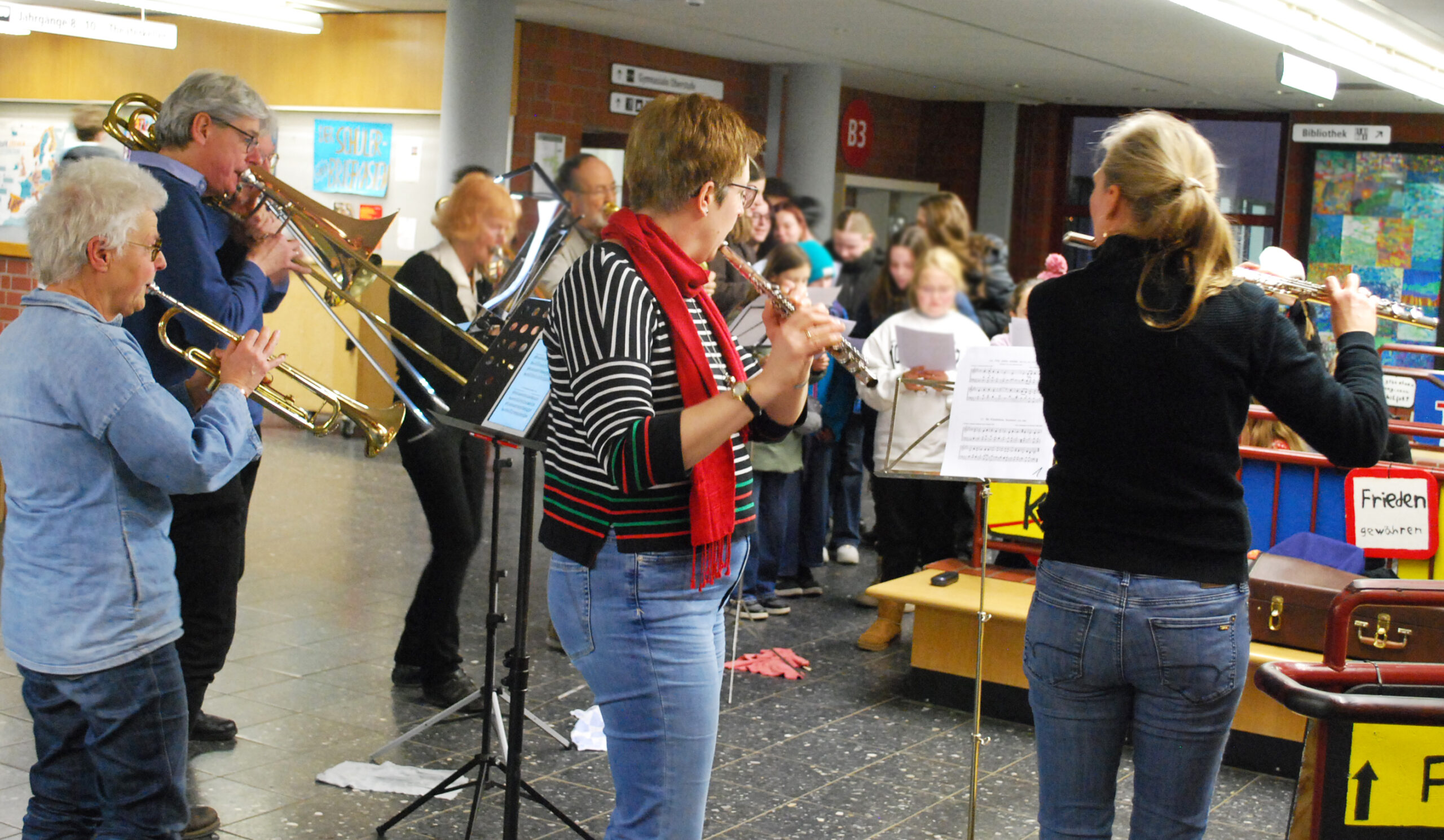 Musikalische Begrüßung am letzten Schultag! Mit erstaunten Gesichtsausdrücken erschienen so manche Schüler*innen am letzten Schultag vor den Winterferien pünktlich zur ersten Stunde: begrüßt wurden sie