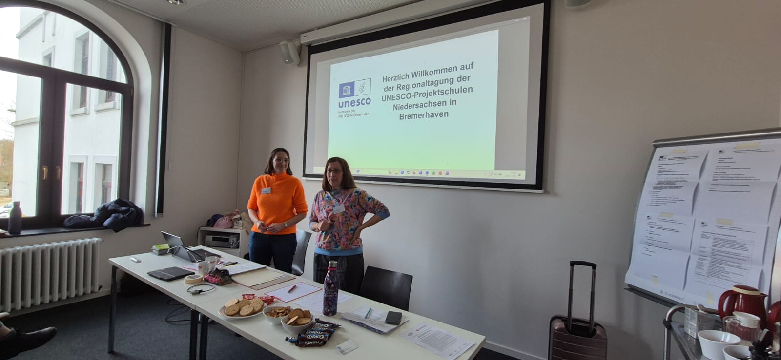 Vom 25.02. bis 27.02.2026 fand die diesjährige Frühjahrstagung der niedersächsisch-bremischen UNESCO-Projektschulen unter dem Titel „Grenzen überwinden“ in Bremerhaven statt. Der Fokus lag dabei auf dem internationalen UNESCO-Projekttag zu diesem Thema, an dem die Schulen 2026 arbeiten, sowie auf dem Klimaschuljahr des Landes Niedersachsen. Nach einer Einführung mit Impulsen und Informationen aus dem MK Hannover (Referentin: Katharina Katechakis) und der Landeskoordination (Nina Kossack und Katja Bettermann) arbeiteten die 36 TeilnehmerInnen in vier AGs zum Internationalen Projekttag „Grenzen überwinden“, zu einem geplanten SchülerInnencamp in Lüchow im November, zur „Initiative Klimabildung“ und zur „Woche der Gerechtigkeit“.