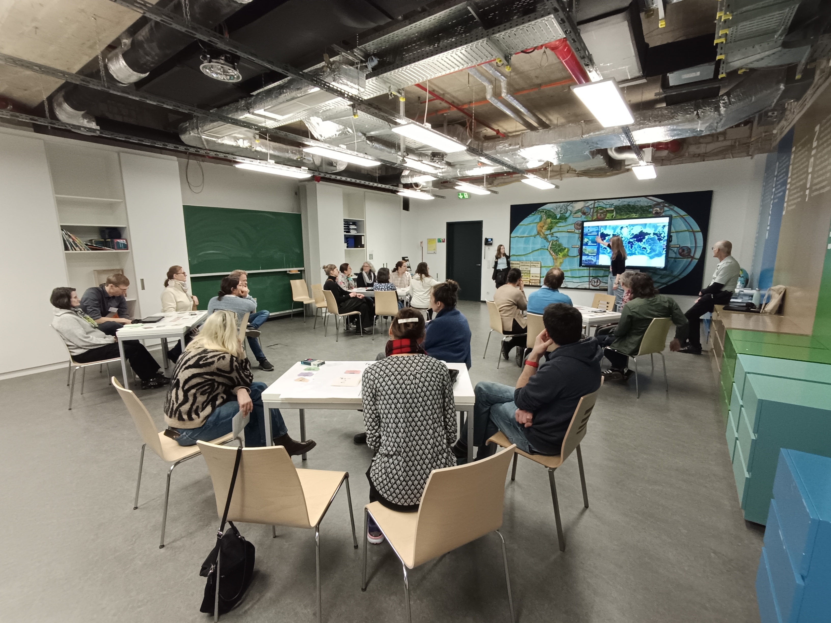Der zweite Tag bot im Klimahaus zunächst eine interessante Einführung in die vielfältigen Bildungsangebote für SchülerInnen aller Altersgruppen (→ info@klimahaus-bremerhaven.de). Anschließend wurden zwei konkrete Workshops zu den Themen „Klimagerechtigkeit“ und „Ocean Mystery“ vorgestellt und durchgeführt, die sich beide als sehr spannend und geeignet für die Durchführung mit Schulklassen und die Einbindung in den Unterricht erwiesen. Natürlich gab es auch die Gelegenheit, die Ausstellung im Klimahaus ausgiebig zu erkunden.